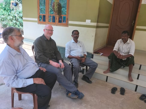 Nach dem Lunch setzten ich mich dann mit Anith, George und Chackochan zusammen, um u.a. die Ergebnisse der aktuellen Ernte, die neuen Verarbeitungsprozesse und ein paar weitere Dinge zu besprechen. Auch wenn solche Meetings bei Temperaturen über 30 Grad recht anstrengend werden können, sind sie immer noch sehr viel effektiver als sämtliche E-Mails oder Videocalls. Der direkte Austausch und der persönliche Kontakt machen unsere Ursprungsreisen auch aus diesem Grund unverzichtbar.