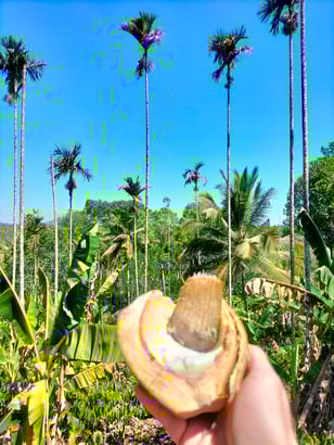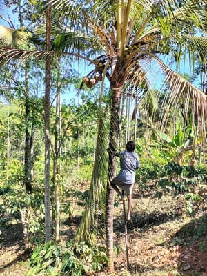 kleine Menge Pfeffer) an. Die Bäume sind bereits in den 1960er Jahren von seinem Vater gepflanzt worden, werfen aber immer noch eine gute Ernte ab, da es sich um eine alte Waynad-Varietät