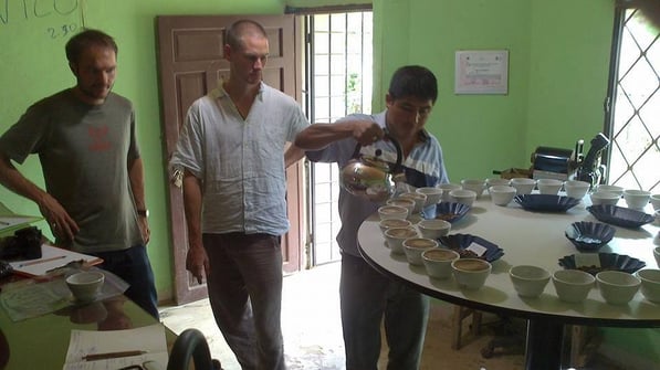 In der Bodega, der Sammelstelle der ACRIM, trafen wir wieder auf Wilfrido Abad, den Cupper der ACRIM, auf Vicente Troya, den Geschäftsführer, auf Francisco den Präsidenten und auf Marcelo Delgado, einen der besten Produzenten der Kooperative der auch immer wieder nebenbei in der Zentrale aushilft.