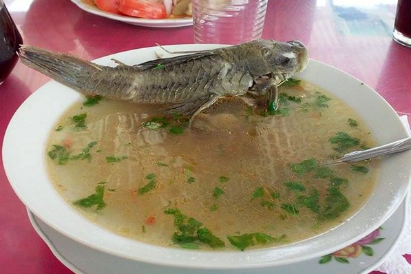 Wir fuhren nun los Richtung Ecuador. Unterwegs machten wir Halt um zu mittag zu essen. Wir hielten an einem kleinen Stassenrestaurant, welches eine Fisch-Brühe mit frisch aus dem Fluss gezogenem Schwarzen Elfenwels (Acanthicus hystrix) mit sehr scharfen Chilis servierte. Das Tier sieht aus wie ein Krokodil ohne Beine mit Welsgesicht. Es hat einen schweren Panzer, fast wie ein Krebs. So ist es mir in Peru auf den allerletzten Drücker also doch noch gelungen, ein WIRKLICH exotisches Essen zu bekommen welches ich noch nie hatte.