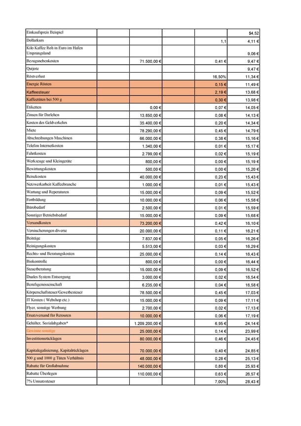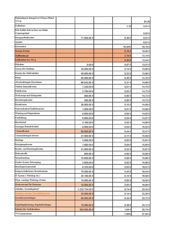 Hier findet ihr die Preiskalkulation für unsere Kaffee am Beispeil des Quietschotter.